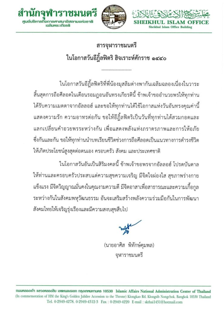 สารจากสำนักจุฬาฯ เนื่องในวาระวันอีดิลฟิตริ